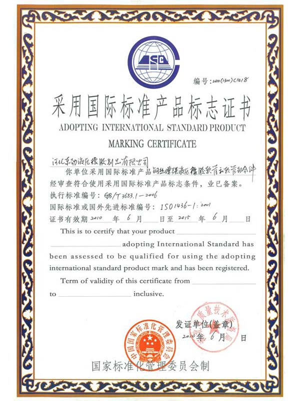 • 鋼編管國際標準產品標志證書